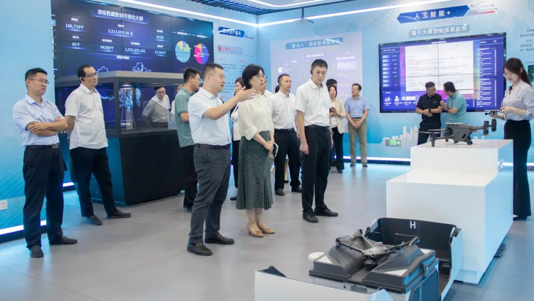 与会人员首先参观了天数集团数字展厅,详细了解企业的发展历程、核心业务发展等情况,沉浸式感受智能组工、人工智能+、数字资产服务、数字民生等行业应用成果。