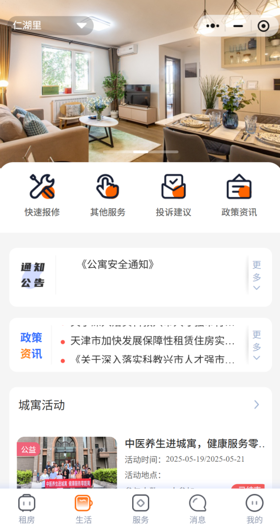 “城运城寓”携手天津市总工会、南开区总工会等持续拓展服务,设立工会驿站、共享职工书屋与共享职工之家,面向户外劳动者、租户与市民开放,提供休憩、阅读与活动场所,打造公益共享空间,传递国企社会责任。同时,“城运城寓”着力构建一键触达式社区平台,整合便民服务、生态合作、社群互动及政务对接等多维资源,让市民从“住有所居”迈向“住有优居”。